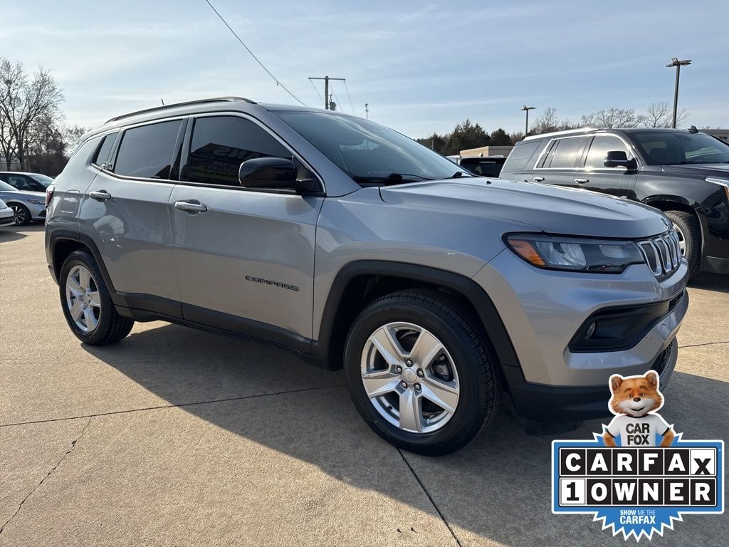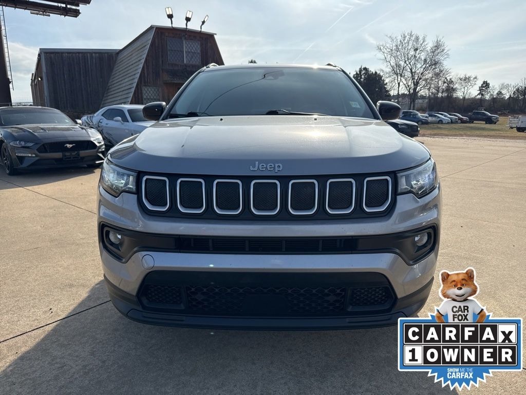 CARFAX One-Owner. Billet Silver Metallic Clearcoat 2022 Jeep Compass Latitude FWD 6-Speed Aisin Automatic 2.4L I4 MultiPoint Inspection, 115V Auxiliary Power Outlet, 17" x 7" Painted Aluminum Wheels, 2nd Row USB Type A/C Charge Only, Air Conditioning ATC w/Dual Zone Control, All-Season Floor Mats, Alloy wheels, Auto-Dimming Rear-View Mirror, Convenience Group, Foot Activated Open 'N Go Liftgate, Heated Front Seats, Heated Steering Wheel, Humidity Sensor, Leather Wrapped Steering Wheel, ParkView Rear Back-Up Camera, Power Adjust 8-Way Driver Seat, Power Liftgate, Quick Order Package 28J, Radio: Uconnect 5 w/8.4" Display (DISC), Remote Start System, Reversible Carpet/Vinyl Cargo Mat, Security Alarm, Universal Garage Door Opener, Vehicle Information Center, Windshield Wiper De-Icer.
