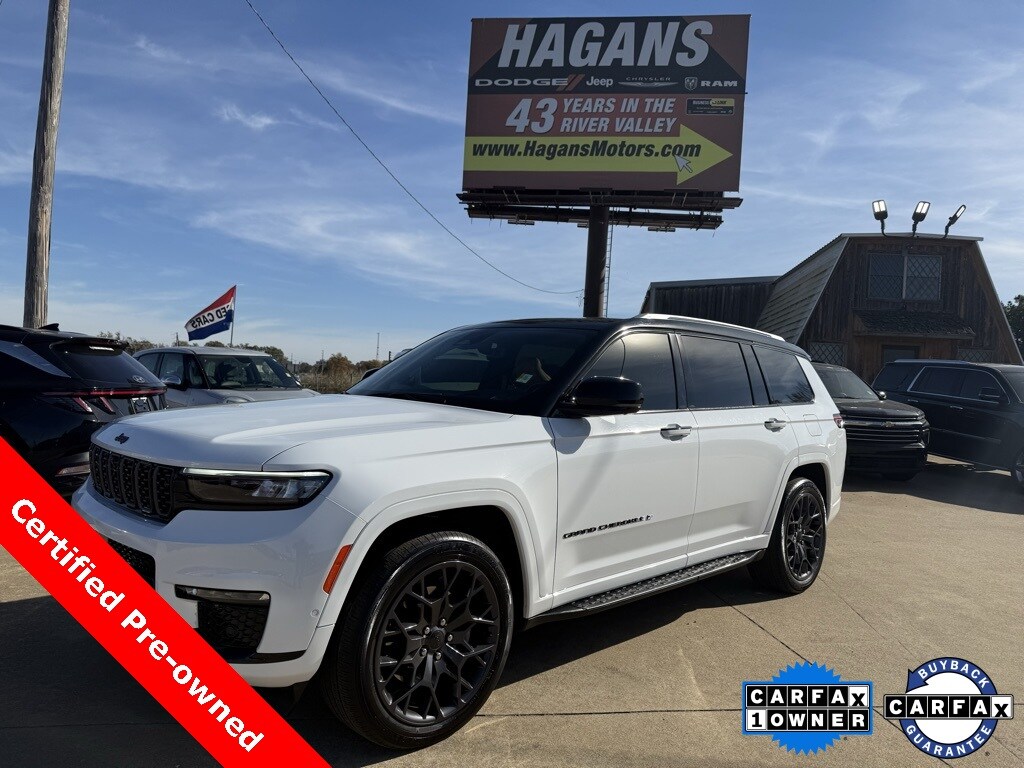 Clean CARFAX. CARFAX One-Owner. Bright White Clearcoat 2023 Jeep Grand Cherokee L Summit 4WD 8-Speed Automatic HEMI 5.7L V8 Multi Displacement VVT MultiPoint Inspection, 19 Speakers High Performance Audio, 2nd Row Manual Window Shades, 950 Watt Amplifier, Active Noise Control System, Advanced Protech Group IV, Deluxe Headliner, Front Passenger Interactive Display, Gloss Black Exterior Accents, Gloss Black Roof Rails, Heads-Up Display, High Altitude Package, Interior Rear Facing Camera, Luxury Tech Group V, Navigation System, Neutral Gray Exterior Accents, Night Vision/Pedestrian-Animal Detection, Painted Door Cladding, Palermo Leather Door Trim, Palermo Leather Seats, Quick Order Package 25U Summit Reserve, Rearview Autodim Digital Display Mirror, Summit Reserve, Summit Reserve Badge, Ventilated Rear Seats, Wheels: 21" x 9.0" Machined Face/Painted Aluminum, Wheels: 21" x 9" Black Painted Aluminum, Wireless Charging Pad.