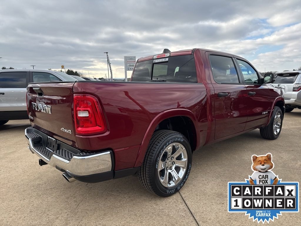 CARFAX One-Owner. Delmonico Red Pearlcoat 2025 Ram 1500 Big Horn/Lone Star 4WD 8-Speed Automatic 3.0L I6 MultiPoint Inspection, 115V Auxiliary Power Outlet, 2nd Row In Floor Storage Bins, 400W Inverter, Auto Power-Folding Mirrors, Auto-Dimming Exterior Driver Mirror, Auto-Dimming Rear-View Mirror, Big Horn Level 1 Equipment Group, Black Exterior Mirrors, Black Premium Power Mirrors, Convex Wide-Angle Exterior Mirror Insert, Exterior Mirrors Courtesy Lamps, Exterior Mirrors w/Heating Element, Exterior Mirrors w/Supplemental Signals, Glove Box Lamp, Heated Front Seats, Heated Steering Wheel, Leather Wrapped Steering Wheel, ParkView Rear Back-Up Camera, Power 2-Way Driver Lumbar Adjust, Power Adjust 8-Way Driver Seat, Power Adjustable Pedals, Quick Order Package 21Z Big Horn, Radio: Uconnect 5 W w/8.4" Display, Rear Power Sliding Window, Rear Window Defroster, Steering Wheel Mounted Audio Controls, Sun Visors w/Illuminated Vanity Mirrors, Universal Garage Door Opener, Wheels: 20" x 9" Aluminum Chrome Clad.