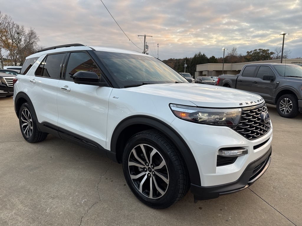 Clean CARFAX. CARFAX One-Owner. Star White Metallic Tri-Coat 2022 Ford Explorer ST-Line 4WD 10-Speed Automatic 2.3L EcoBoost I-4 MultiPoint Inspection, 4WD, 20" Machined Aluminum w/Painted Pockets Wheels, Equipment Group 250A, Exterior Parking Camera Rear, FordPass Connect, Navigation System, Power Liftgate, Radio: B&O Sound System by Bang & Olufsen, Steering wheel mounted audio controls, SYNC 3 Communications & Entertainment System, Voice-Activated Touchscreen Navigation System.