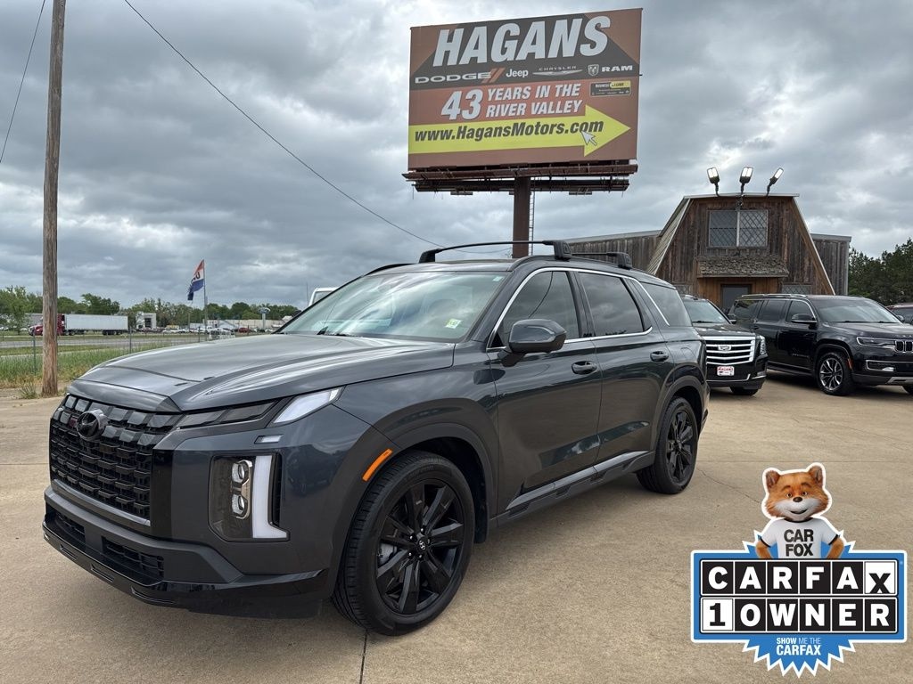 CARFAX One-Owner. Steel Graphite 2025 Hyundai Palisade XRT FWD 8-Speed Automatic with SHIFTRONIC V6 MultiPoint Inspection, Apple CarPlay & Android Auto, H-Tex Leatherette Seat Trim, Heated Front Bucket Seats, Heated front seats, Navigation System, Option Group 01, Power Liftgate, Power moonroof, Remote keyless entry, Steering wheel mounted audio controls, Wheels: 20" x 7.5J Dark Alloy w/Rugged Styling.