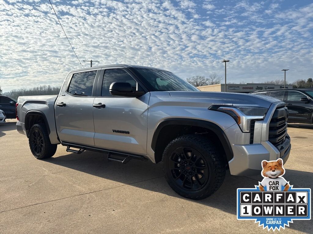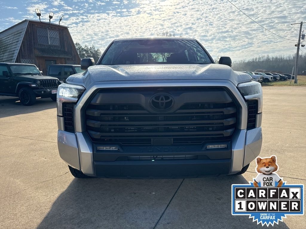 CARFAX One-Owner. Silver 2024 Toyota Tundra SR5 4WD 10-Speed Automatic 3.4L V6 MultiPoint Inspection, 4WD, Black Cloth, Steering wheel mounted audio controls.